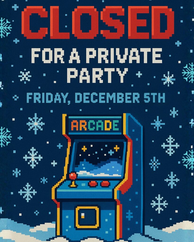 WE WILL BE CLOSED ON FRIDAY, DECEMBER 5TH FOR A PRIVATE PARTY